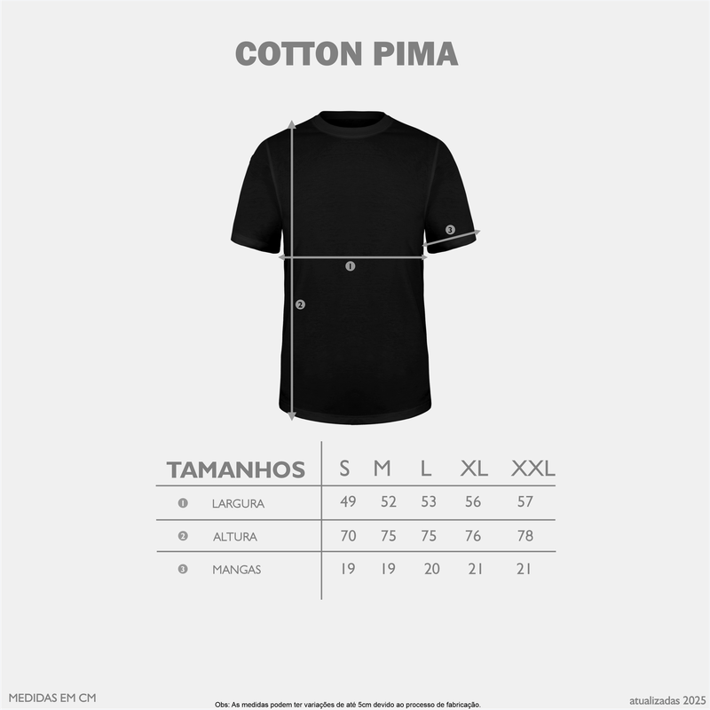 Camiseta fabricada com cortes retos e tecido de meia malha, fio 30.1, penteado, com 100% algodão e gramatura 165 gramas. Essa malha premium unissex, se encaixa perfeitamente em qualquer biotipo, possui gola com reforço, mangas curtas e gola rebatida. Ideal para pessoas que se preocupam com os mínimos detalhes.